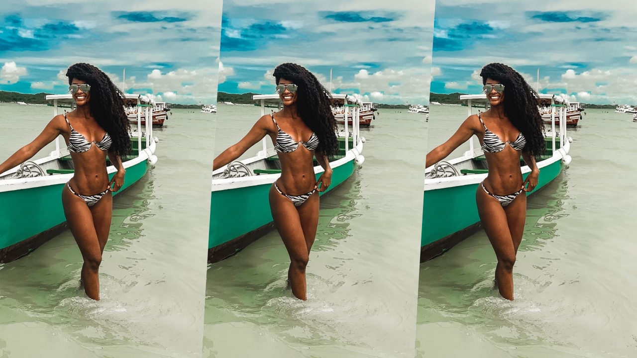 Curtindo uma praia na Bahia, a bailarina do programa dominical, Domingão do Faustão, Carol Amaral, aparece usando biquíni do tipo fio-dental exibindo seu corpo sarado e cheio de curvas. “O que é que a bahia tem? #verao”, escreveu ela em uma das imagens.