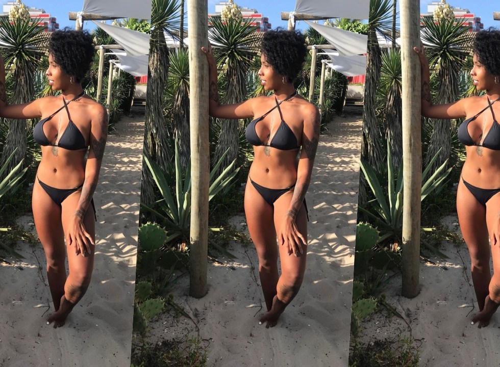 #WCW: Modelo sul-africana Blue Mbombo posa de biquíni preto