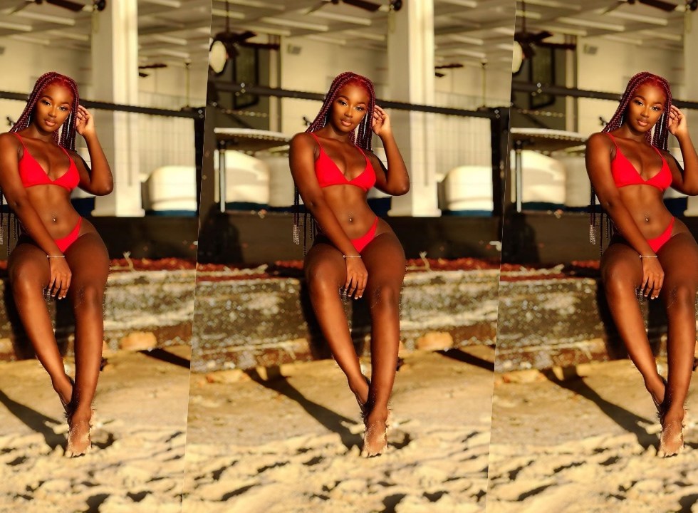 Rapper Mulatto mostra sua figura em um maiô vermelho